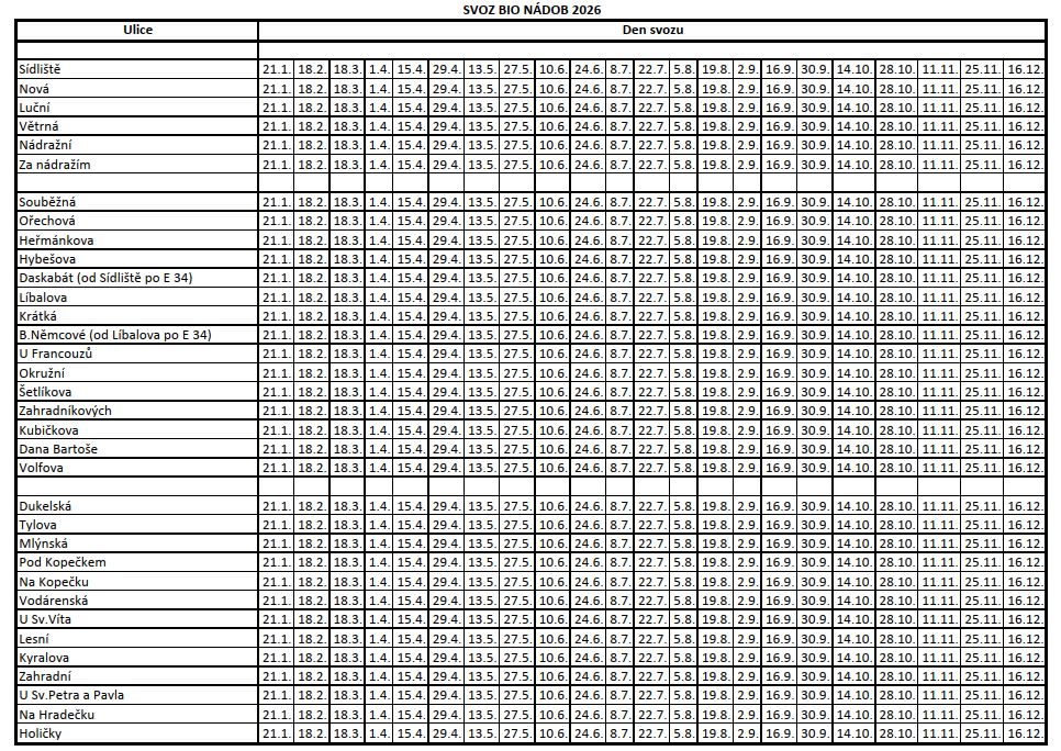 Svoz BIO odpadu 2026