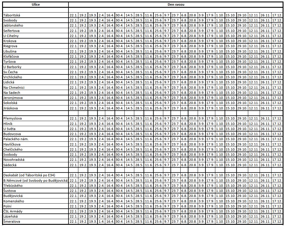 Harmonogram svozů pro rok 2026